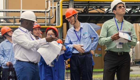7月5日上午,OPCW視察組和國(guó)家代表、省市陪同人員在聽取核查前情況介紹后,共同前往公司生產(chǎn)區(qū)域進(jìn)行了現(xiàn)場(chǎng)核查。視察組一行在察看企業(yè)總平面布置之后,分別對(duì)生產(chǎn)裝置、工藝流程等作了詳細(xì)了解,核實(shí)了企業(yè)生產(chǎn)經(jīng)營(yíng)中的相關(guān)記錄、原始臺(tái)賬、報(bào)表等,公司陪同人員客觀、專業(yè)的回答了核查組提出的各類問題。